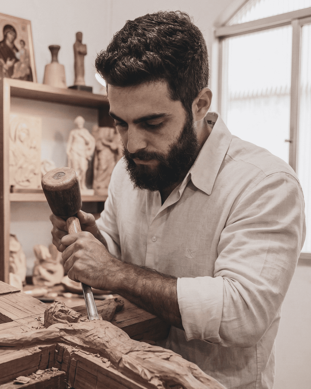 Meu maior objetivo é que você sinta a verdade do entalhe manual só de tocar na obra.